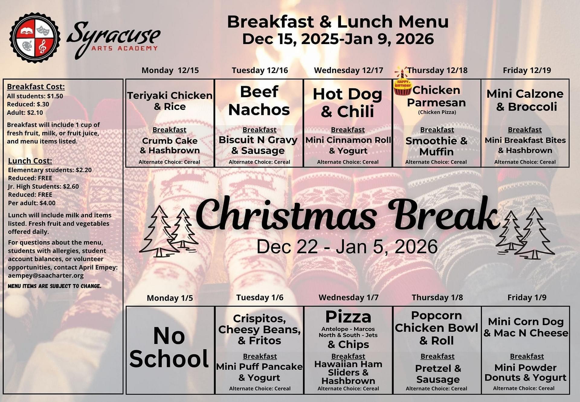 It is very important that the kitchen receive the form from the teacher at least 2 weeks prior to the field trip. Please be proactive in getting this information back to the teacher.